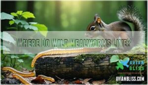You’ll find wild mealworms living in leaf litter, rotting wood, and other damp, sheltered spots.