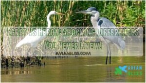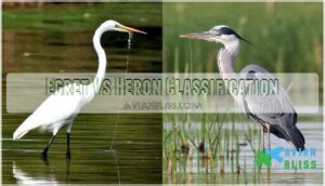 Within the Ardeidae family’s 60 to 70 species, you’ll find that herons and egrets aren’t scientifically distinct groups—they’re closely related birds separated mainly by naming conventions, size, and plumage patterns.