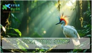 Think of conservation organizations as the safety net keeping exotic birds from disappearing forever. Groups like WWF and BirdLife International operate across 100+ countries, building global partnerships that transform communities into conservation champions. You’re seeing real results: community involvement stabilizes breeding populations, while local patrols cut illegal trade substantially. These efforts matter because: