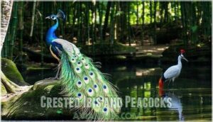 When you observe exotic birds, you’ll notice their Physical traits overview reveals nature’s engineering genius. Plumage Coloration ranges from iridescent peacock blues—produced by nanostructures scattering light—to camouflaged patterns that disappear into foliage.