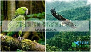 At the edge of survival, the Kakapo—a flightless parrot—reminds you how fragile rare birds can be. Its population hovers around 237, saved from the brink by conservation efforts and careful breeding programs. Alongside the Kakapo, the Philippine Eagle rules its treetops yet faces critical threats from habitat loss. Here’s why these two endangered species matter: