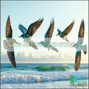 You’ll find that birds’ wings have evolved into remarkable adaptations that perfectly match their lifestyles and habitats, from the elliptical wings of forest songbirds to the long, narrow wings of ocean-soaring albatrosses.