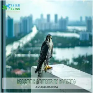 You’ll find falcons across Florida in habitats ranging from open grasslands to bustling urban areas.