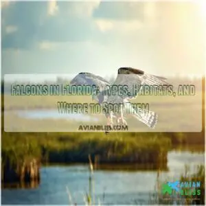 - You’ll find four main falcons in Florida: the American Kestrel, Merlin, Peregrine Falcon, and Crested Caracara, each adapted to different habitats like grasslands, coasts, and urban areas.