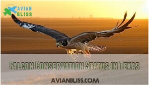 - You’re witnessing remarkable conservation success stories in Texas, particularly with Peregrine Falcons recovering from near-extinction and ongoing Aplomado Falcon reintroduction programs that’ve established breeding populations in South Texas.