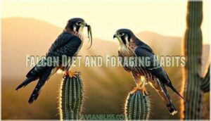 Understanding these foraging behaviors helps you predict where you’re most likely to spot different falcon species, from the scavenging Crested Caracaras along roadsides to cooperative Aplomado Falcon pairs working together in open desert areas.