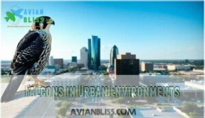 Peregrine falcons particularly excel at urban nesting, with documented success on buildings like the UT Tower in Austin and Comerica Tower in Dallas. You’ll find them using building materials like concrete ledges and metal brackets as nest foundations.