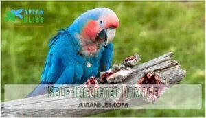 You’ll notice this self-inflicted damage through behavioral changes like excessive preening or outright feather mutilation.