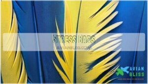Your bird’s stress bars appear as horizontal lines across feathers, revealing Formation Causes like nutritional struggles or environmental pressure during growth.