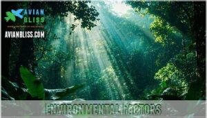 • Environmental factors like poor air quality, low humidity, and cramped spaces can irritate your parrot; optimize their living conditions with good ventilation, full-spectrum lighting, and enough space to prevent feather plucking.