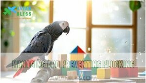 You can help your African Grey stop plucking by focusing on enrichment, diet, and reducing triggers like stress or boredom.