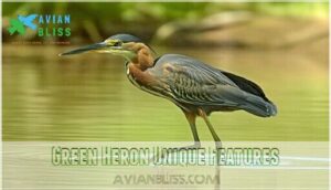 Unlike other Florida birds with long legs, Green Herons prefer solitary nesting habits near secluded water sources.