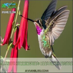 Looking for the tiniest feathered friend in Texas? The Calliope Hummingbird takes this title at under 4 inches long and weighing just 2-3 grams, making it Texas’s smallest green bird.