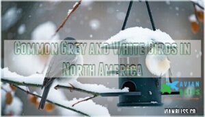 You’ll find a remarkable variety of grey and white birds across North America’s diverse landscapes, from the nimble Dark-eyed Junco to the vocal Tufted Titmouse.