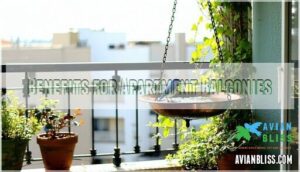Hanging bird baths are perfect for your balcony. They’re easy to install, save space, and attract birds safely. You’ll enjoy watching feathered visitors without taking up valuable floor space.