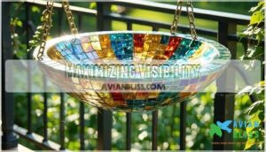 You’ll appreciate how the transparent 96 oz water bowl attracts colorful visitors while remaining highly visible to passing birds.