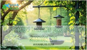 While most customers praise its stability, note that some double hooks may bend during strong winds. The station’s metal stake base provides solid anchoring in most soil types, though you might need reinforcement for softer ground, ensuring a complete bird feeding experience with multiple feeders and a sturdy pole system.