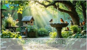By hanging them in shaded spots, you create a cool, inviting habitat. These versatile features aren’t just practical; they’re key to transforming your garden into a bird’s favorite retreat, making it an essential part of a bird’s haven.