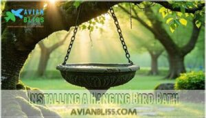 Installing a hanging bird bath correctly guarantees stability and safety. Secure the bath using strong hardware or a bird bath chain. Pick a sturdy branch or mounting point to support the weight and prevent tipping. Aim for a proper hanging height to keep it safe from predators.