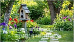 A freestanding birdhouse can be a charming yard centerpiece, blending seamlessly with garden decor.