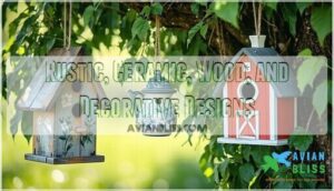 Ceramic, cedar, wood, and rustic designs cater to different birds.