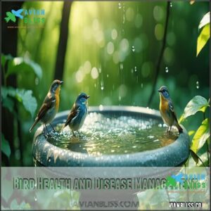 - You’ll recognize healthy birds by monitoring for signs of stress or illness like feather abnormalities, appetite loss, and behavioral changes—clean habitats and fresh food sources help prevent disease transmission.