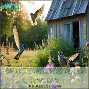 - You’ll create a thriving bird sanctuary by providing fresh water, planting native species, and eliminating pesticides—these simple changes support birds while balancing your local ecosystem.