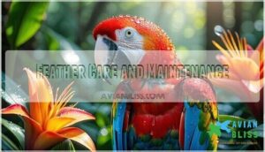 Proper feather maintenance requires consistent grooming routines that include regular bathing, nail trimming, and careful monitoring of your bird’s physical condition.