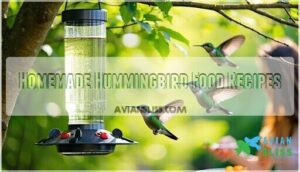 Making hummingbird nectar at home is simpler than you think. Mix one part white sugar with four parts water for perfect nectar ratios. Avoid honey or brown sugar types since they ferment quickly and harm birds.