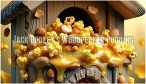 Jack Dudley’s woodpecker pudding creates a rich treat that’ll have birds flocking to your yard. This classic homemade bird food combines peanut butter, suet, oats, and corn syrup into an energy-packed mixture.