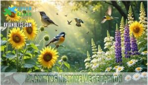 Habitat Creation through native vegetation meets bird habitat requirements better than feeders alone, supporting bird species diversity in your backyard bird attracting efforts.
