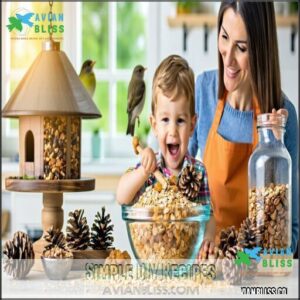Start with a birdseed mix recipe featuring sunflower seeds, oats, and dried fruits. Use sturdy feeder types, like mesh or tray feeders, for various seed mixes.