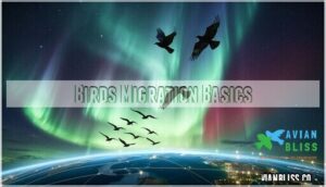 During first migration, young birds follow their genetic programming while experienced travelers rely on magnetic fields and environmental cues. These avian navigation marvels aren’t random wanderings but calculated journeys perfected over millennia, showcasing their innate ability to navigate through annual rhythm.