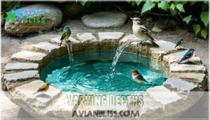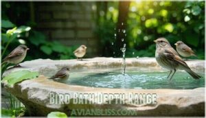 - You’ll want to keep your bird bath between 1-2 inches deep to ensure safety for all bird species – this depth prevents drowning while allowing comfortable bathing and drinking.