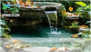 These upgrades maintain bird safety during harsh months, keeping your feathered friends hydrated when natural water sources freeze solid.