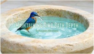 You’ll need to check your bird bath’s water depth regularly to keep it within the safe 1-2 inch range that prevents drowning while encouraging visits.