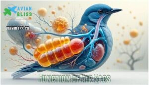 Avian air sacs work like biological bellows, pumping fresh oxygen through your bird’s lungs with remarkable efficiency.