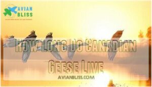 - You’ll find Canadian geese typically live 10 to 24 years in the wild, with some hardy individuals pushing their lifespan to an impressive 33 years through remarkable survival strategies.