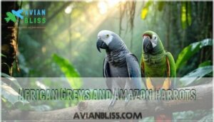 In Species Comparison, African Greys excel in Talking Ability while Amazons shine socially.