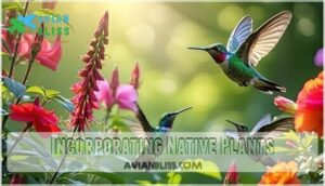 This approach guarantees sustainable gardening while creating diverse ecosystems that support year-round hummingbird populations.