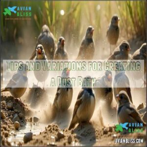 Customizing a dust bath for your flock guarantees their unique needs are met. Pay attention to bird preferences—some love fine dust textures, while others prefer coarser soil.