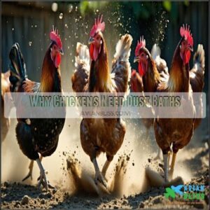 Dust absorbs oils, suffocates pests, and supports feather maintenance.
