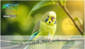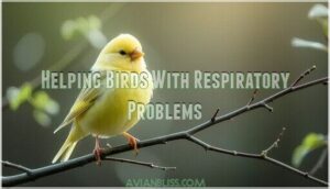 To help a bird with respiratory problems, first call an avian vet immediately—these symptoms can turn critical faster than a hummingbird’s heartbeat.