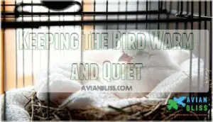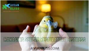 - You’ll need to minimize stress by handling your bird gently and keeping it in a quiet space during respiratory distress, as anxiety can worsen their condition and consume energy needed for recovery.
