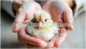 You’ll need to maintain vigilant monitoring of your bird’s health after respiratory treatment, watching for any returning symptoms like tail bobbing or nasal discharge.