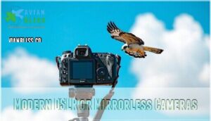You’ll need a modern DSLR or mirrorless camera with a good sensor size, high megapixel count, and image stabilization for excellent bird photography, especially for capturing birds in flight with fast autofocus settings and swift shutter speed.