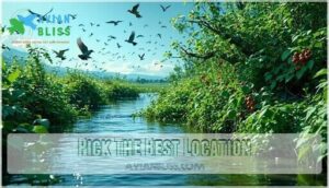 You’ll want to pick a location with abundant food sources, like rivers or lakes, to increase your chances of capturing birds in flight.