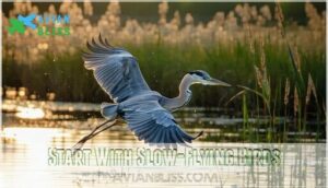 You’ll master flight photography faster by starting with slow-flying birds like herons or pelicans that give you time to practice tracking and focusing techniques.