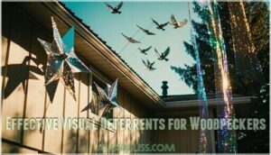 You’ve got plenty of options to keep woodpeckers away besides shiny objects. From sound devices to repellents, these practical methods can protect your home without harming the birds.