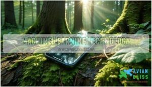 Machine learning algorithms analyze thousands of audio samples to achieve remarkable algorithm accuracy in bird song identification.